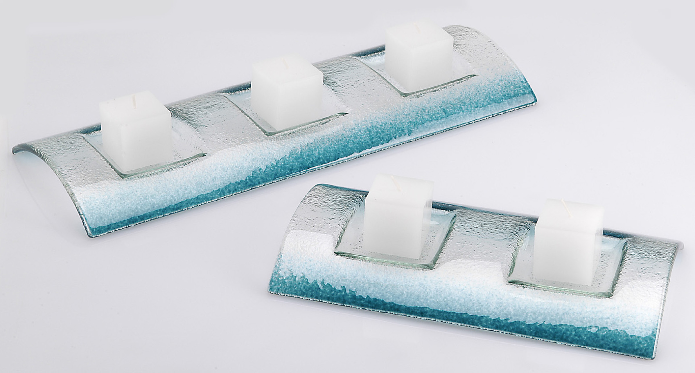 Bougeoir en verre décoratif, au design moderne, fabriqué à la main et coloré par la méthode du Fusing.