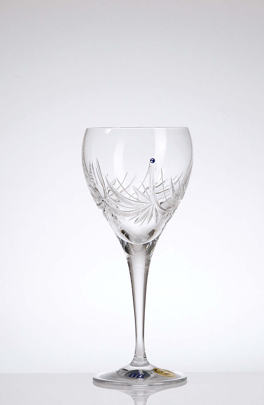 Verre à Eau en véritable Cristal de Bohème (24% PbO), taillé à la main et orné d'1 élément bleu de cristaux de Swarovski, pour vous apporter dans votre secteur de vie "Carrière"!!
